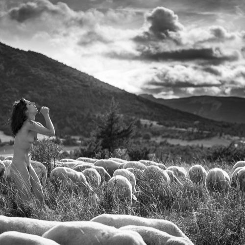 自然環境に溶け込む身体や、羊や豚の群れに付き添う裸の羊飼いの写真は、農業や大地での生活体験に由来している。裸の動物たちと同じように、最もシンプルな姿で捉えられた羊飼いたちは、群れと対等な関係にある。 これらの画像には、牧歌的で神話的な要素があるだけでなく、その女性らしさにはエコロジー的でエロティックな側面もある。エティエンヌ・レンゾにとって、羊飼いの女性たちは「動物たちとの親密さを通じて、神話的な空間の見えない世界との仲介者であり、ミューズとして見るべき存在」でもある。